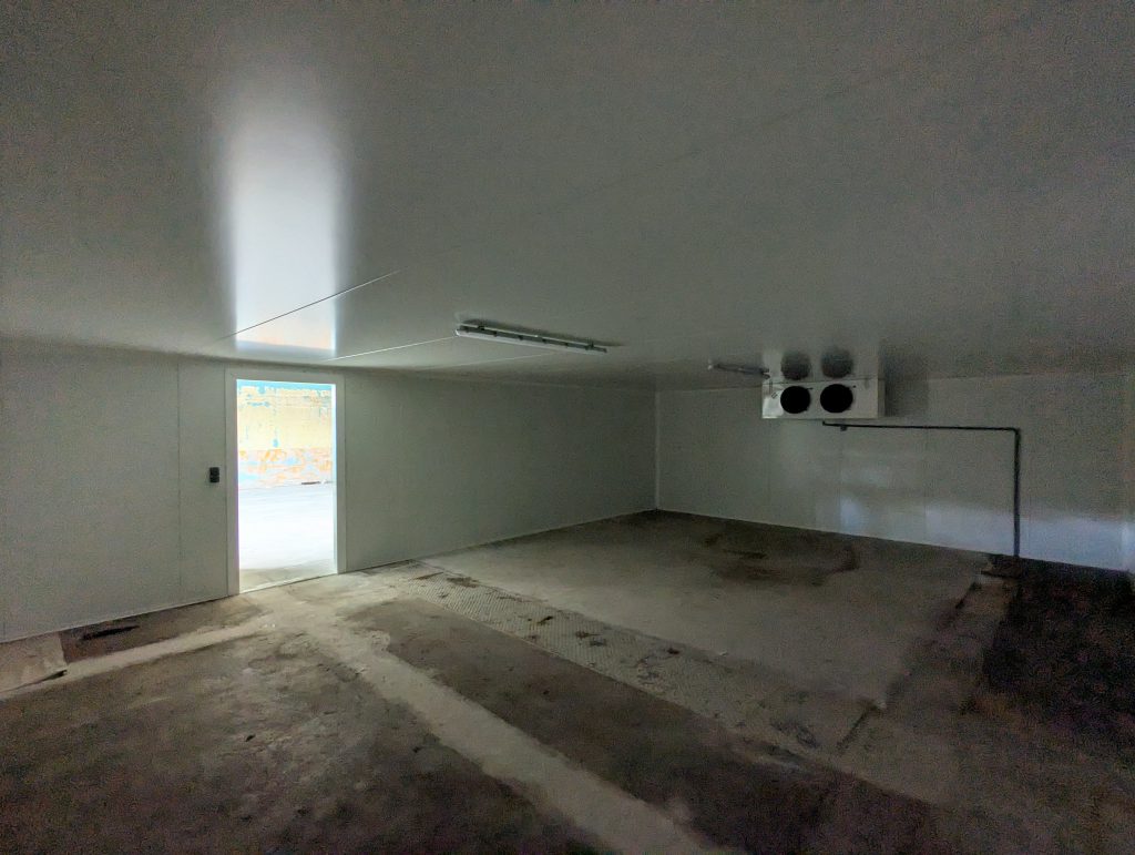 Grande chambre froide et son espace de préparation et chargement.